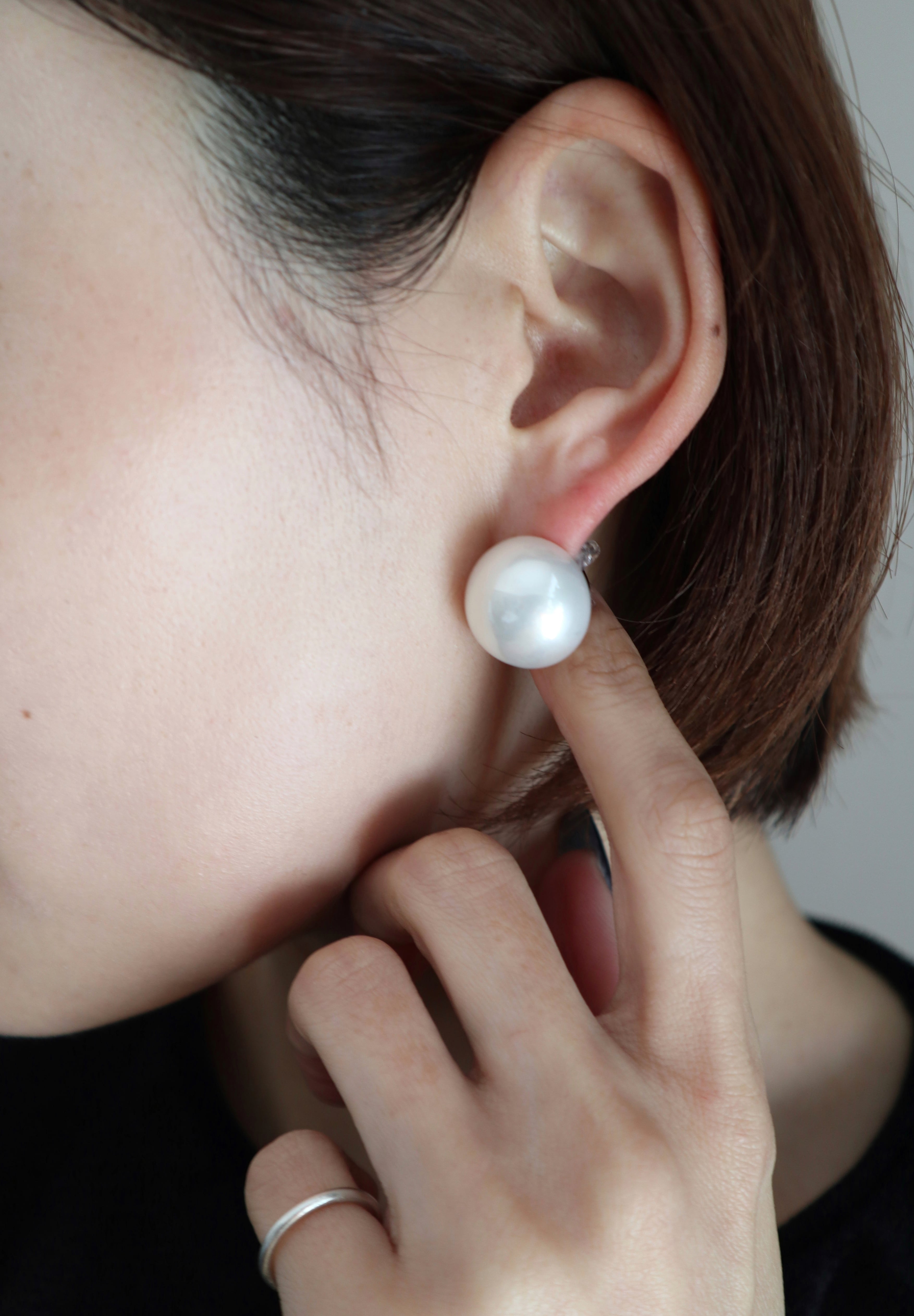 ⟨ select ⟩ 素材:合金(シルバー925ポスト) サイズ:17mm 色: ホワイト パールカボションの艶が、 顔まわりを上品に明るく見せてくれます。 主張しすぎない存在感で、 普段使いからきちんとした日まで幅広く活躍。 ひとつ持っていると頼れるアイテムです。